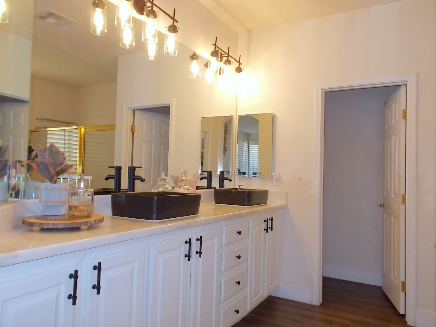 Welcome to this beautifully remodeled luxury home located in the highly desirable Peccole Ranch neighborhood. With soaring high ceilings and an open, airy feel, this home offers both elegance and comfort — perfect for families looking for space, style, and an unbeatable location. The home features 5 spacious bedrooms, including two primary suites — one conveniently located downstairs and another upstairs. The upstairs primary suite includes a bonus attached room, ideal for a home office, nursery, gym, or private sitting area — a rare and valuable find! Enjoy entertaining in style with a dedicated bar area, perfect for hosting guests or creating your own cozy evening retreat. Step outside to enjoy a gorgeous backyard with brand-new turf, creating a clean, low-maintenance outdoor space perfect for relaxing or entertaining. Located directly on the beautiful Peccole Ranch greenbelt, you’ll have scenic walking paths right outside your door. Just across the street is a park with access to tennis courts, offering an active and family-friendly lifestyle. The home is also just minutes from Clarence Piggott Academy of International Studies, making school drop-offs easy and convenient.