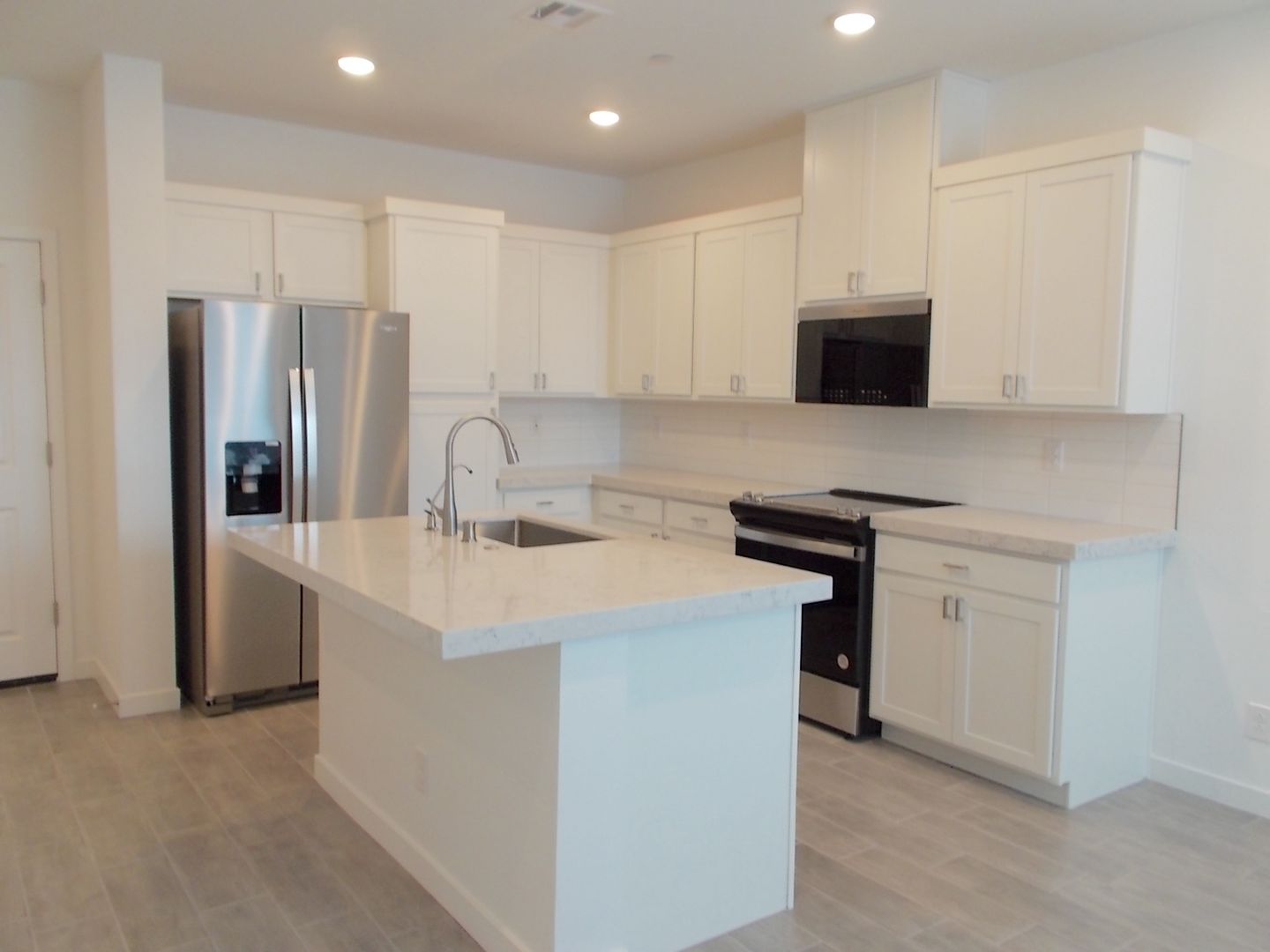 Welcome to Alderidge Townhomes, nestled in the resort-style, amenity-rich Cadence community! This stunning two-story townhome features a spacious two-car garage and soaring 9' ceilings on both levels, creating an open and airy feel throughout. The bright gourmet kitchen boasts a large island perfect for seating three, along with modern shaker-style cabinetry, sleek quartz countertops, and stainless steel appliances. Enjoy upgraded solid surface flooring throughout the entire first floor and all wet areas, blending durability with style. Ideal for entertaining or relaxing at home, this beautifully designed space combines comfort and function in one of Henderson’s most desirable master-planned communities. With parks, walking trails, and community amenities just steps away, Alderidge Townhomes offers the perfect balance of convenience and lifestyle. Don't miss out on this opportunity to call Cadence home!