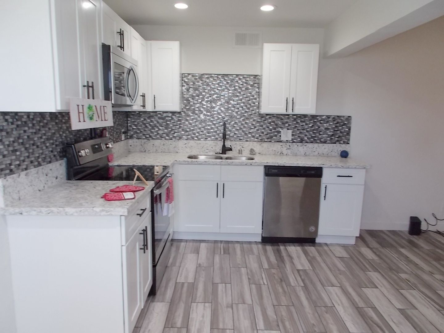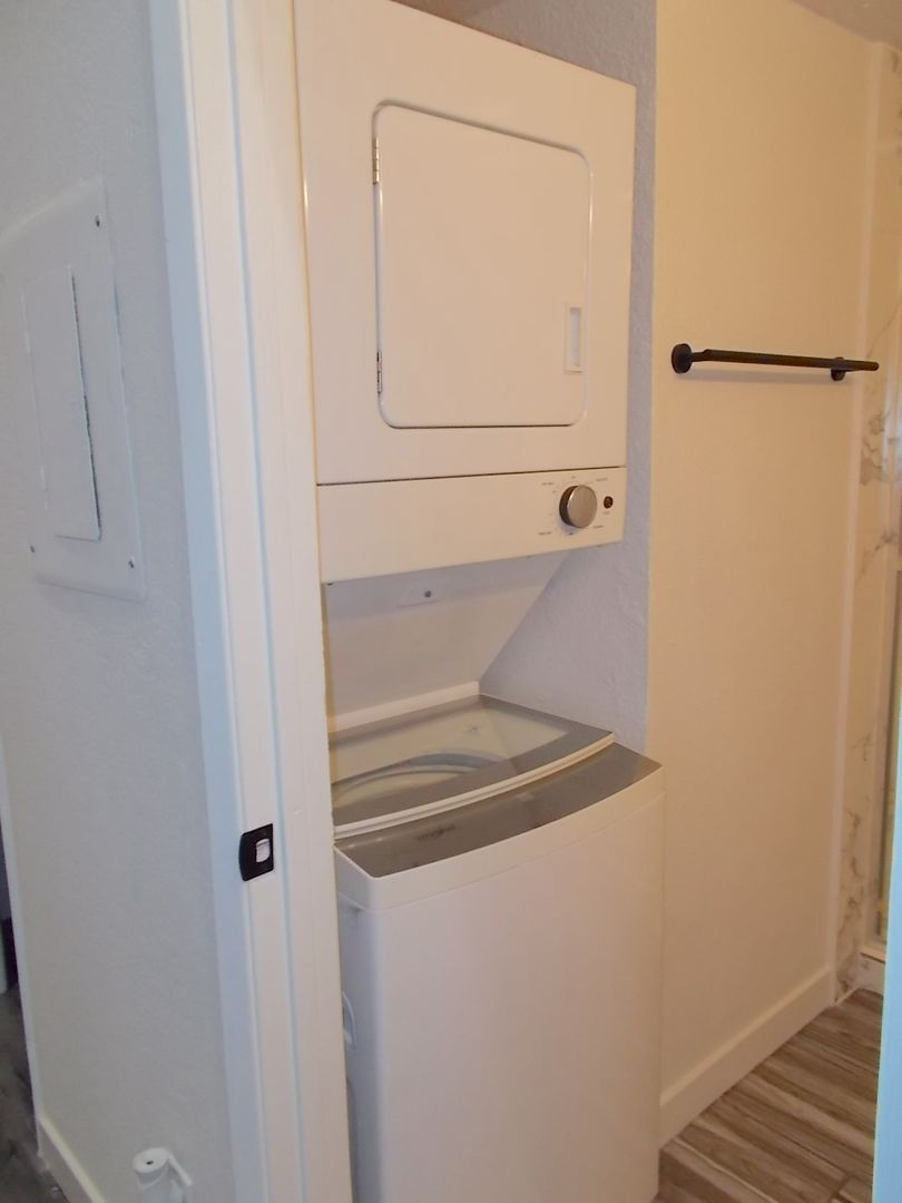 Beautifully upgraded condo just minutes from the Strip! Located in a secure gated community, this stylish 2nd-floor home offers modern finishes throughout. Enjoy laminate wood flooring, granite countertops, custom cabinetry, stainless steel appliances, and a stackable washer/dryer. Freshly painted and move-in ready! The open layout includes a fully remodeled loft with a full bath—perfect as a private bedroom, guest suite, or home office. Relax in complete privacy or take advantage of community amenities, including a sparkling pool.